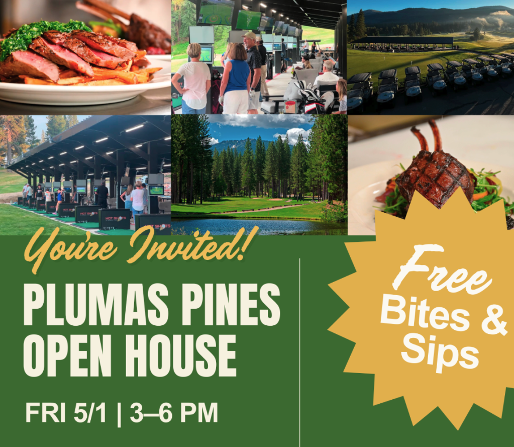 Join us for a fun afternoon at Plumas Pines Golf Resort! Complimentary bites & sips, free access to Hot Shots, Prize giveaways on golf & dining.