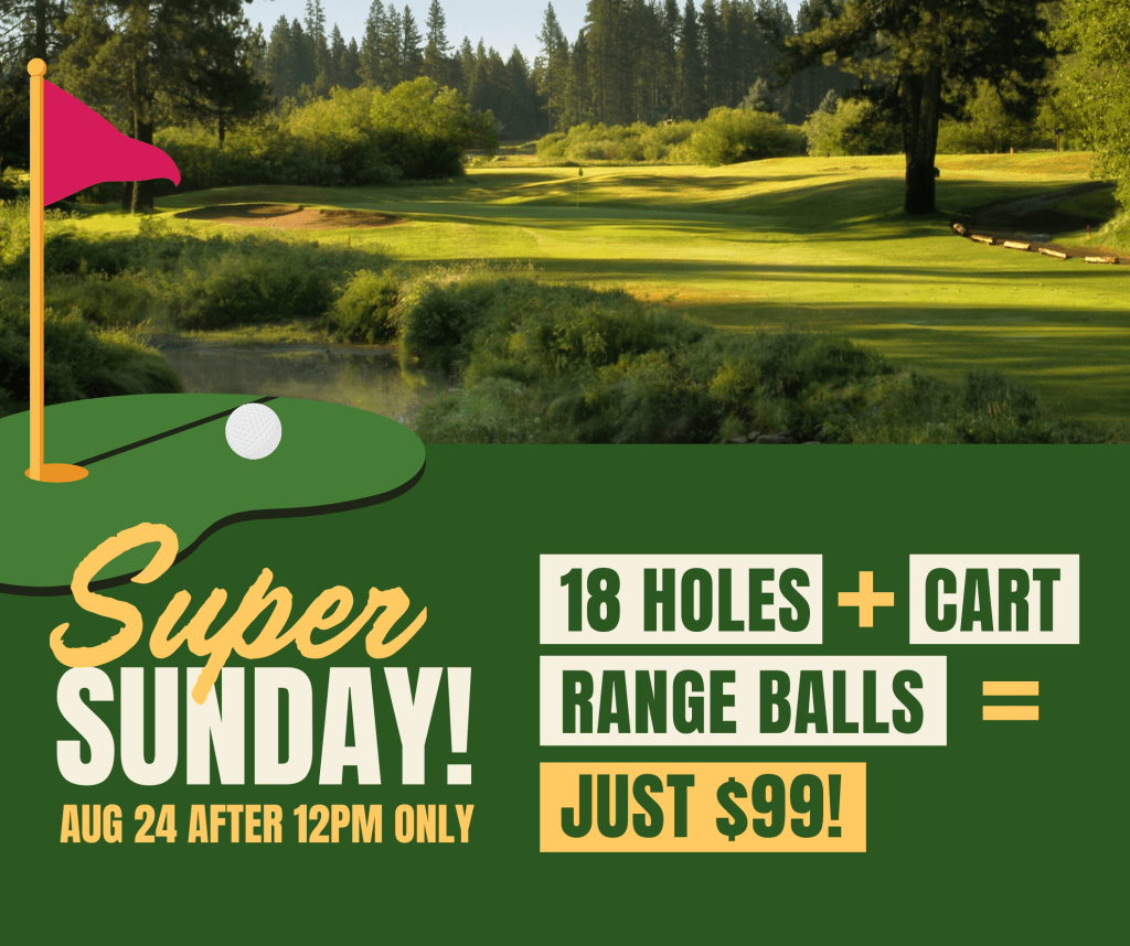 18 holes, cart, range balls for $99. 8/24 after 12pm only
